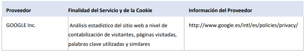 Los terceros prestadores de servicios con los que hemos contratado algún servicio para el que es necesario la utilización de cookies son los que se listan a continuación: